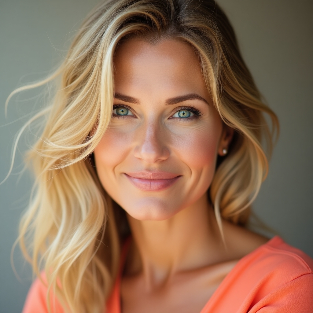 Flux Dev Realistic natural portrait of a 30 woman with warm sp 0 4